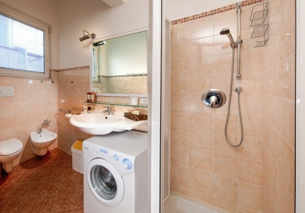Trilocale: 1 camera con 1 letto matrimoniale + 1 letto singolo + 1 camera con letto matrimoniale + 1 divano letto matrimoniale nel soggiorno.